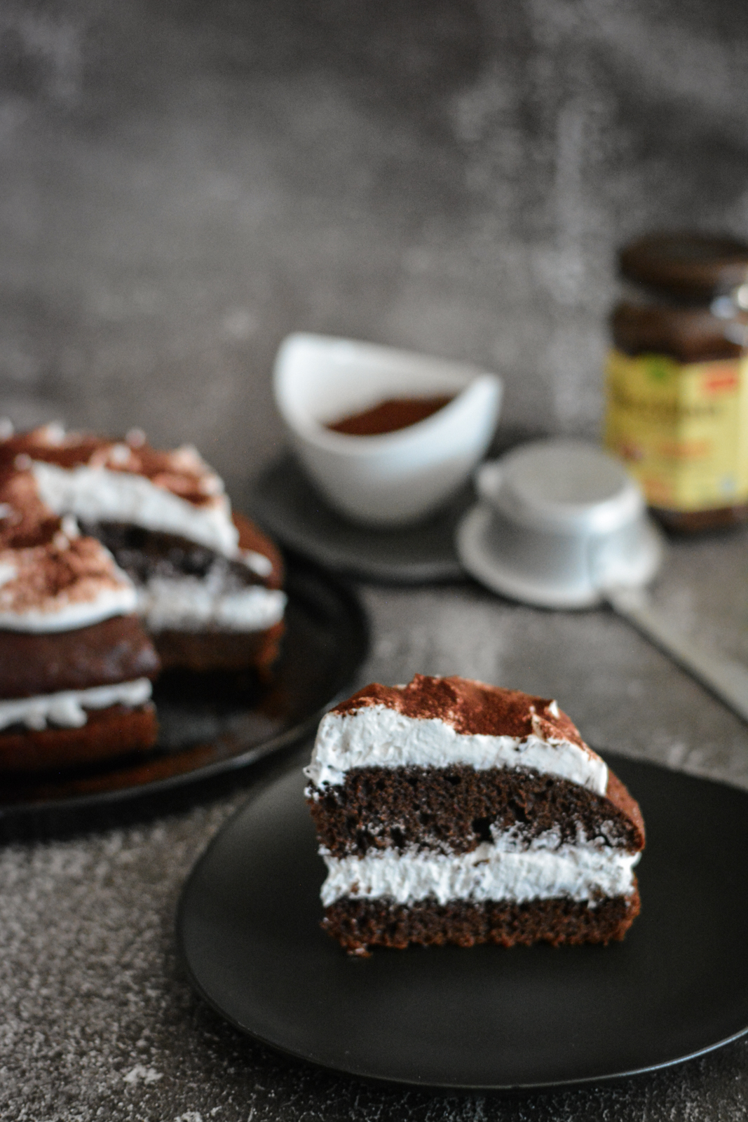 La versione “classica” prevede che, una volta fredda, la base venga tagliata a metà e farcita con uno strato generoso di crema spalmabile e panna montata. Per la versione più golosa, la torta và generosamente ricoperta di panna e spolverata a piacere con il cacao amaro.