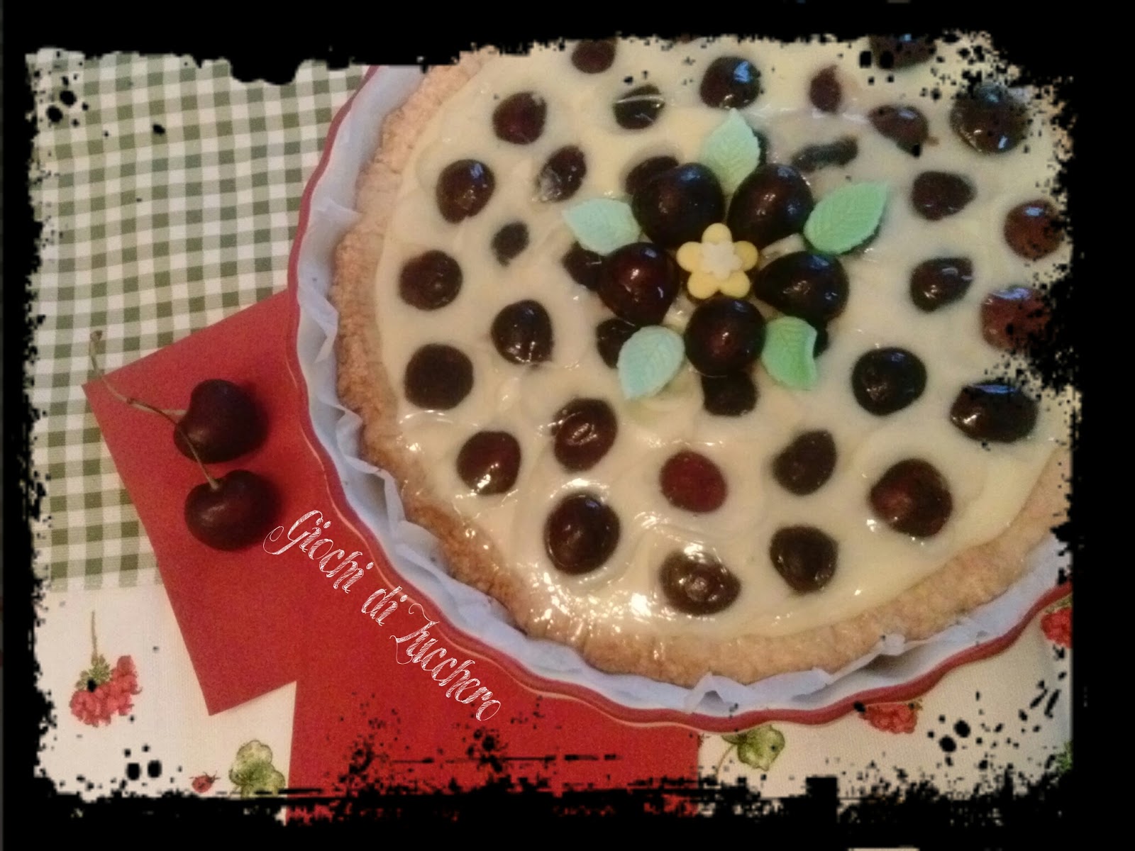 Poi l’ho riempita con la crema e vi ho immerso le ciliegie denocciolate, tagliate a metà.