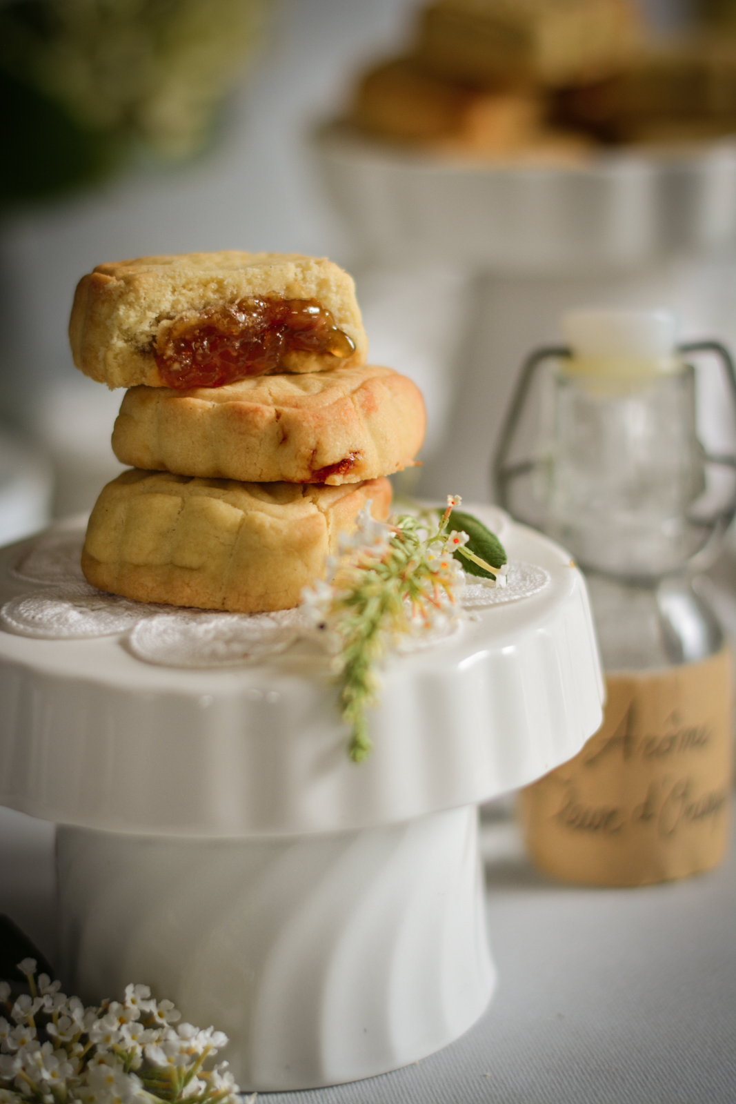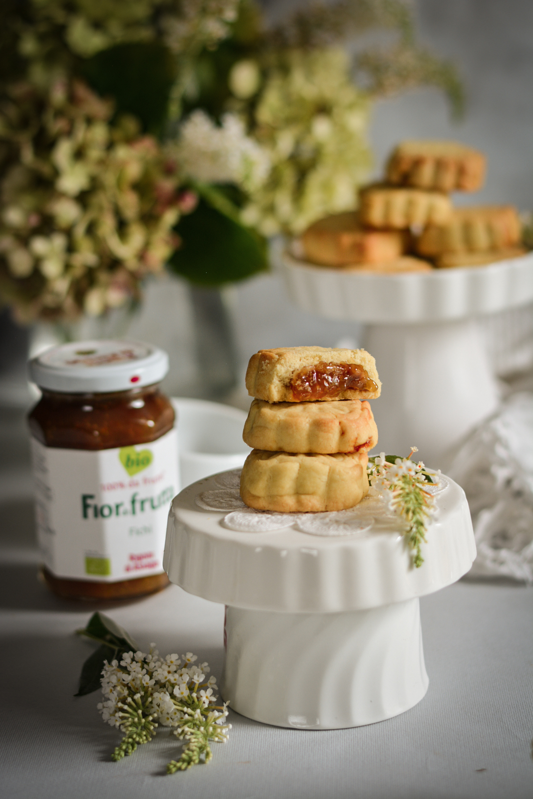 - Formate circa 30 palline con la pasta sablée, grandi come una piccola noce, appiattitele in modo da creare un solco all’interno, e farcitele con un cucchiaino di farcia ai fichi.