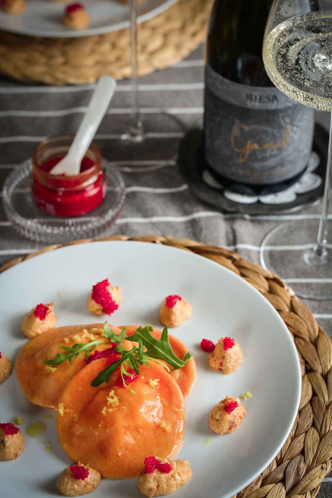 - la sapidità intensa delle acciughe e delle uova di lompo trova un equilibrio ideale con la freschezza citrina dello spumante e la nota aromatica della scorza di limone